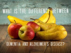 Dementia is an umbrella term used to describe symptoms of a degenerative brain disease. Dementia is to Alzheimer’s what fruit is to an apple or what shortness of breath is to Asthma.